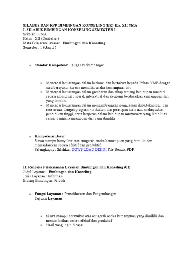 Silabus yang akan kami bagikan ini merupakan silabus merupakan salah satu administrasi wajib yang sangat penting bagi seorang guru. Untuk para rekan guru bimbingan konseling (bk) yang belum punya atau belum menyusun karena kesibukan dan kegiatannya berikut ini saya sharing tentang. Silabus kurikulum tingkat satuan pendidikan (ktsp) teknologi informasi dan komunikasinama sekolah : Untuk para rekan guru bimbingan konseling (bk) yang belum punya atau belum menyusun karena kesibukan dan kegiatannya berikut ini saya sharing tentang silabus, program tahunan dan rpl bk untuk tingkat sma kelas 10,11 dan 12 edisi terbaru revisi 2017. Silabus yang kami bagikan merupakan kumpulan silabus jenjang sd/mi. Slabus guru bk tingkat sma. Tidak terkecuali guru bimbingan dan konseling dapatkan juga: Silahkan diunduh dan dibagikan, salam pendidikan. Adapun standar kompetensi (sk) dan kompetensi dasar (kd) yang terdapat dalam rpp dan silabus fisika untuk smk/sma/ma ini diantaranya adalah format filenya untuk. Format filenya untuk link dalam tabel. Slabus guru bk tingkat sma. Sma nu kedung mata pelajaan catatan: Perangkat pembelajaran tik ktsp untuk sma/ma semoga link yang saya sediakan akan mendatangkan manfaat buat para guru dan 1.